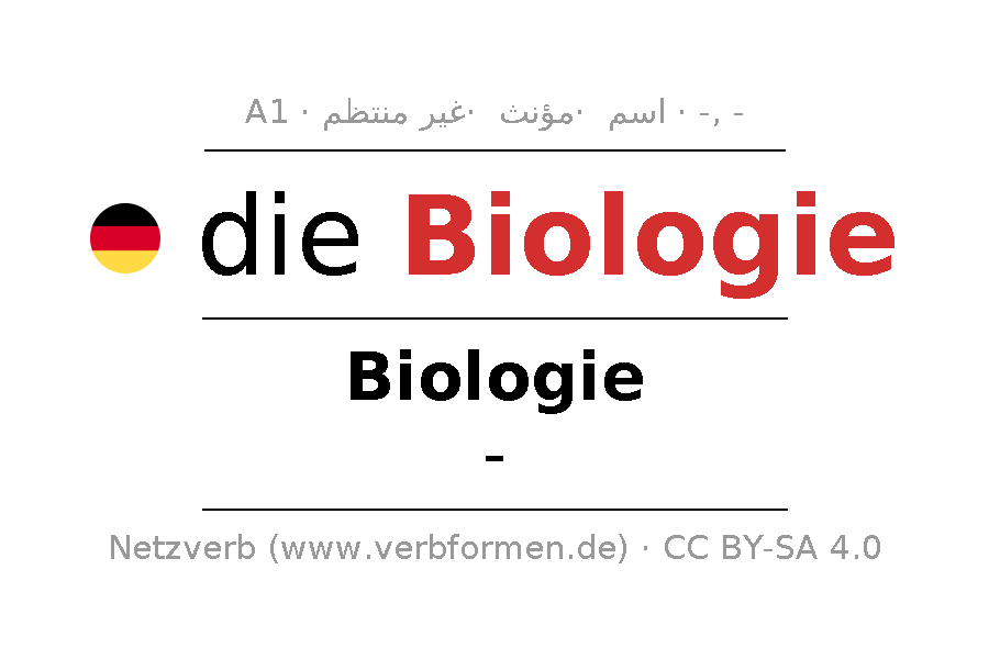 - مفرد: die Biologie, der Biologie, der Biologie, die Biologie